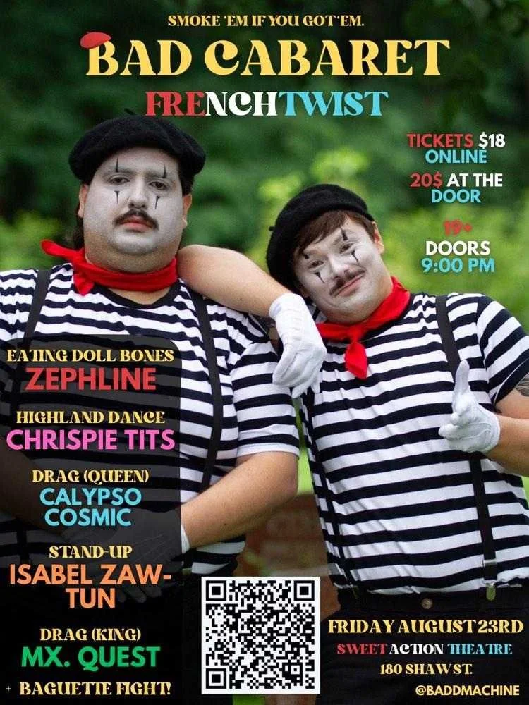 BAD CABARET hosts strange and novel acts of all persuasions, every third week of the month at Sweet Action Theatre. Follow @baddmachine on Instagram for lineup announcements.