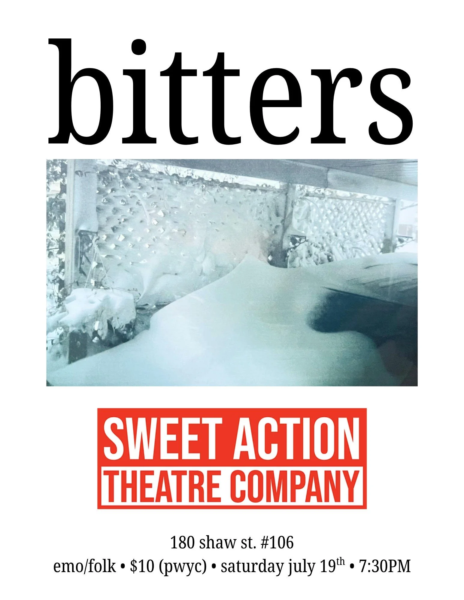 Bitters Saturday, July 19, 2025 7:30 PM 9:00 PM Google Calendar ICS $10 (PWYC)Bitters is an alternative folk band from Windsor, Ontario, Canada comprised of River Bourque, Jeremy Burke, Cavelle Doucet-lefebvre, Dylan Iannicello, Graham Venney, and Tim Maitland.