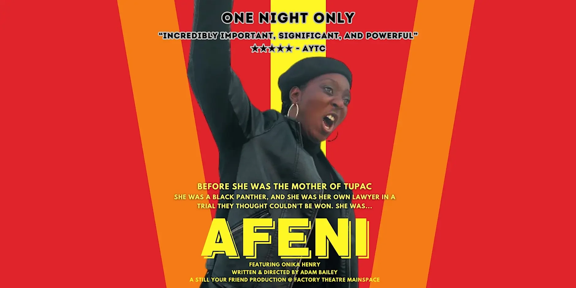 One Night Only, Onika Herny give "a stunning performance" as Afeni Shakur in this one woman show, written by Adam Bailey (My Three Deaths).